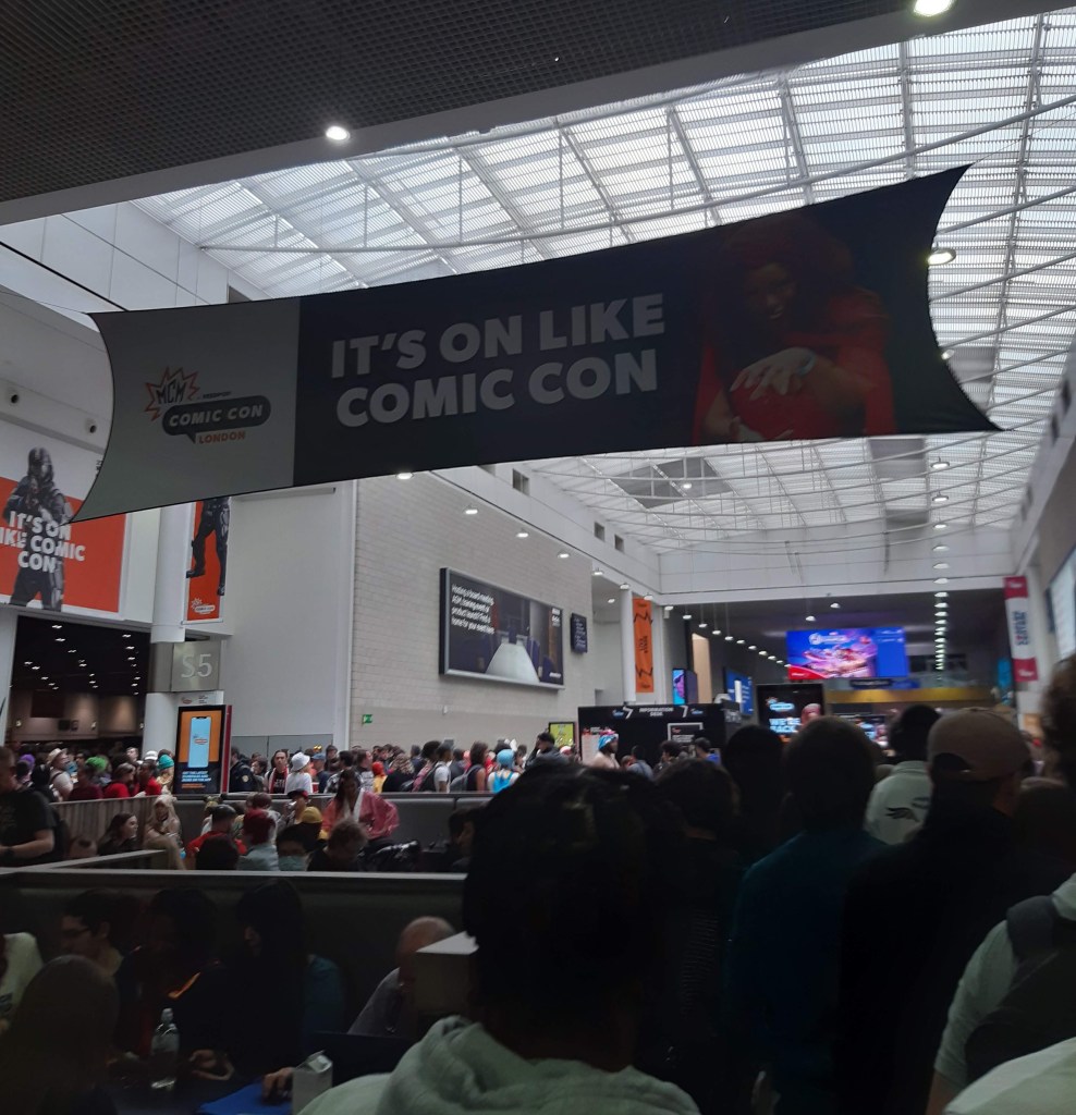 We browsed the stalls and I was tempted by a comic but bravely said no. I stopped a Nightwing cosplayer and complimented him. He was queuing for lunch, and so was unprepared. (Compliments wait for no man!)
