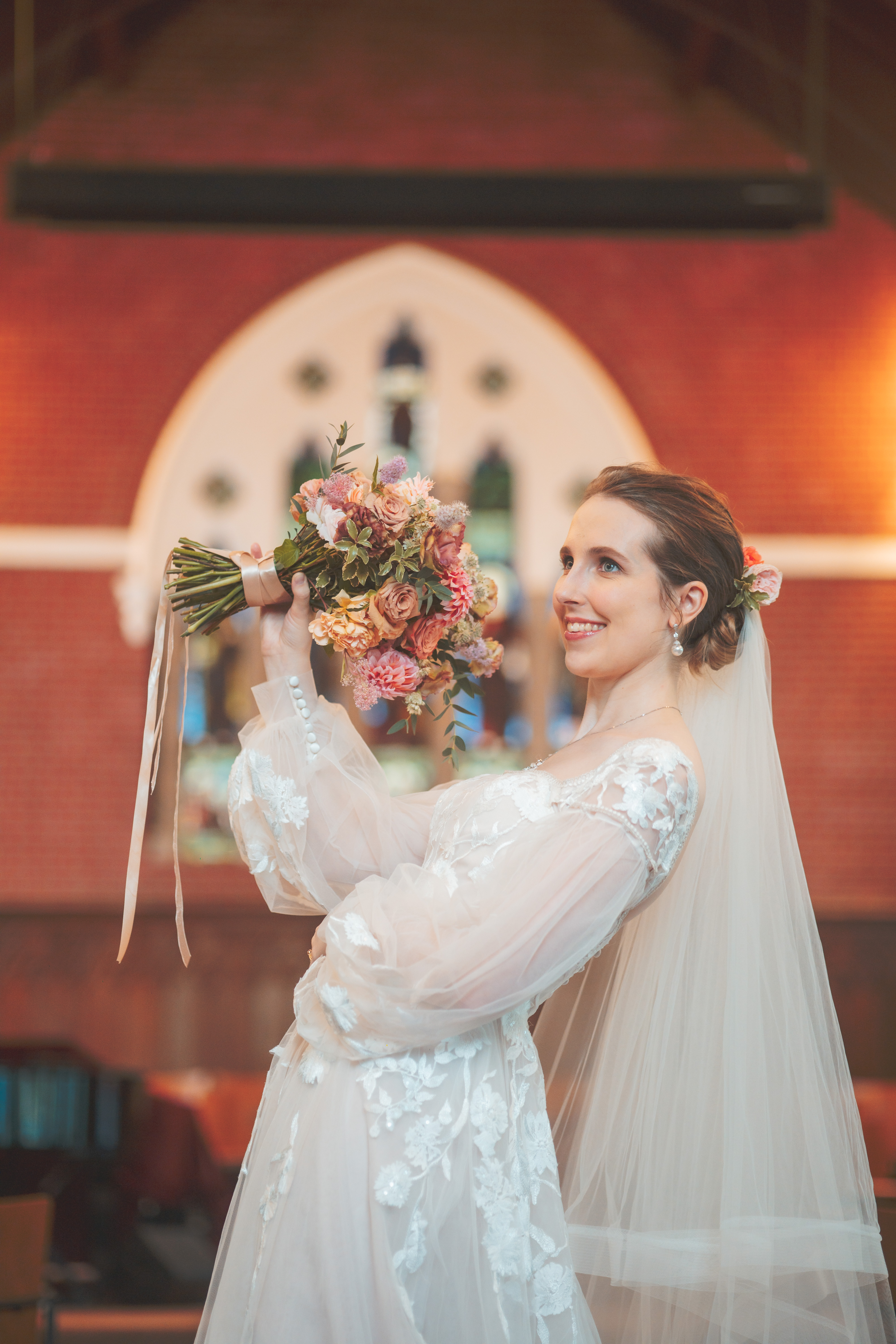 behold – my smile! and also: the dress we had brought with us from the UK and Reader, it was BEAUTIFUL! STUNNING! THE MOMENT! LOOK AT THE SLEEVES! LOOK AT THEM! LOOK AT MY BOUQUET!