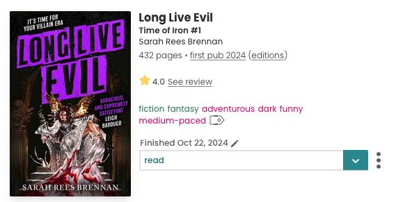 Long Live Evil reminded me of the good old days of fictionpress.net and those really, really good fanfics that just wiggle their way into your brain. I sat down and devoured this book in one day. Couldn’t help it. Is it perfect? No. Is it so deliciously delicious that you have to read it? Yes.