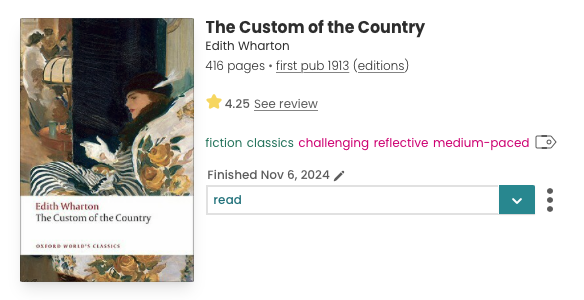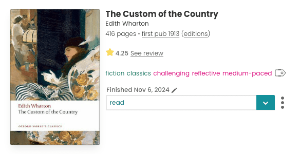 What else is there to say about The Custom of the Country that I haven’t said already? Undine Spragg is her name and she definitely deserves it. It reminded me that the classics are classics for a reason.